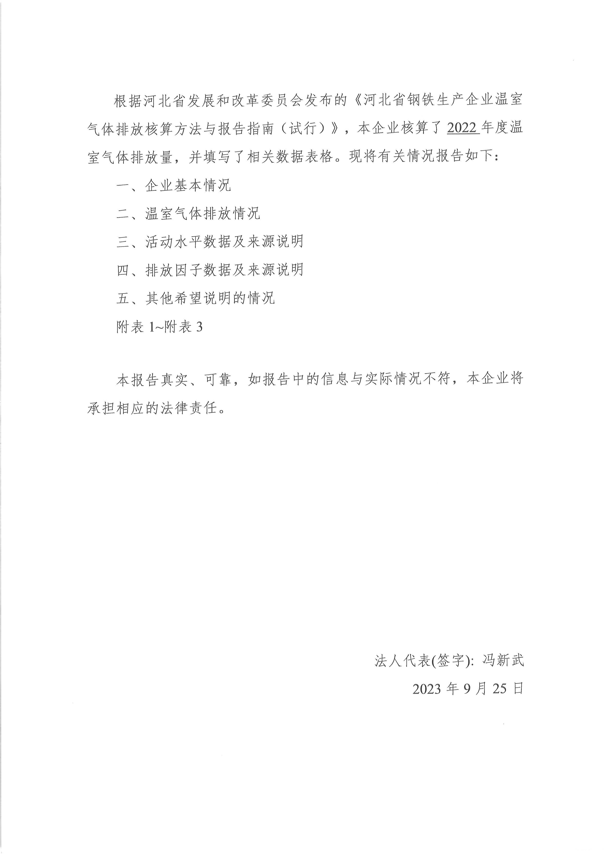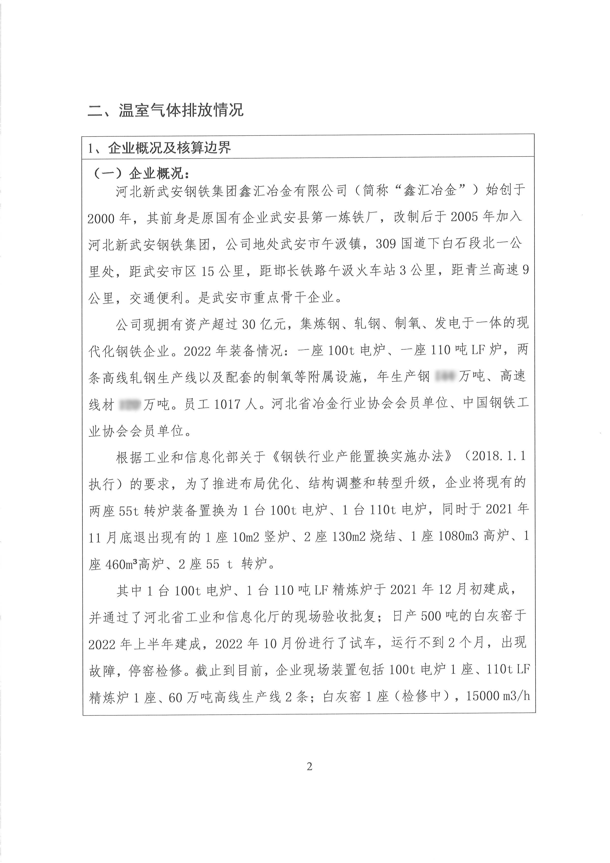 2022年河北新武安鋼鐵集團鑫匯冶金有限公司碳排放報告