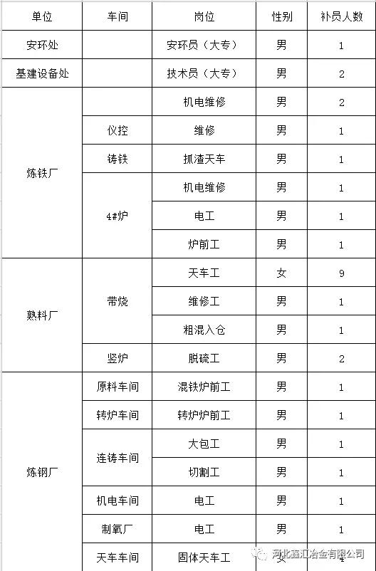任職條件:年齡18至40周歲,從事相關行業2年以上,熟練工優先錄取。